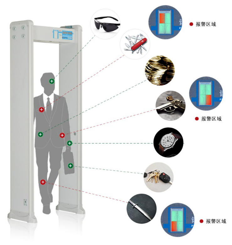 預(yù)先設(shè)定金屬物品重量、體積、大小、部位、排除鑰匙、首飾、皮帶扣等誤報(bào)警。